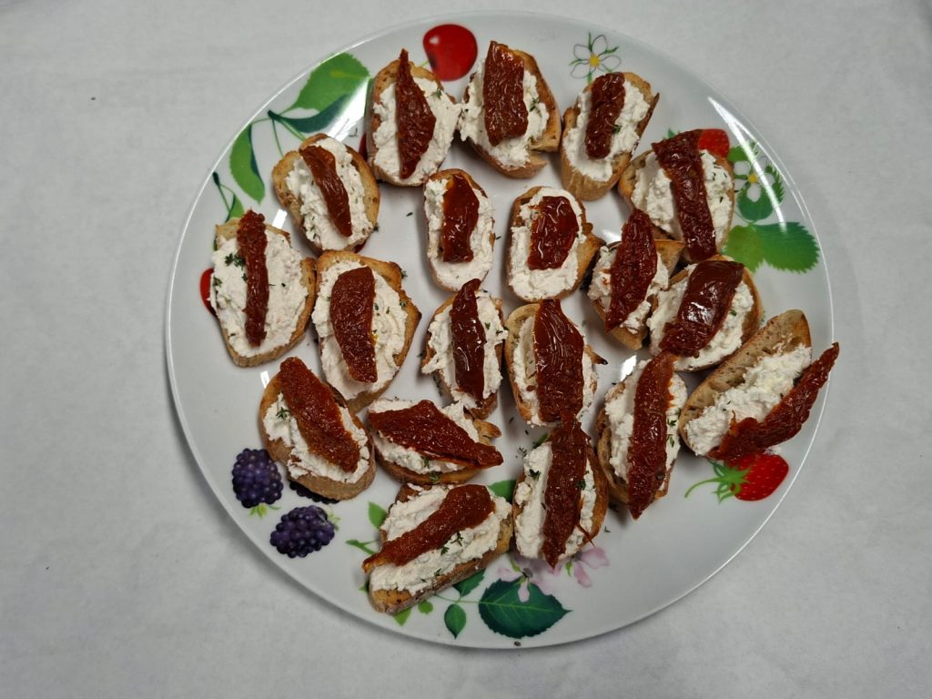 - Crostini fromage de chèvre-tomates confites